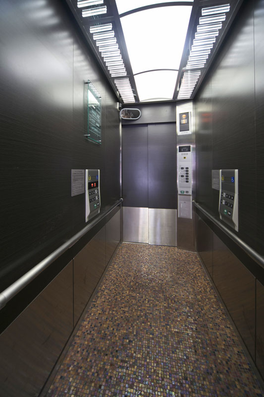 エントランスからエレベーターに乗るまでの間で、また来たくなる空間づくりと、緊張感のあるスペースづくりの両方をコンセプトにプラン致しました。