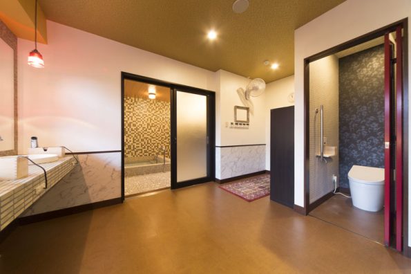 既存の女性ロッカーを広く改装し、パウダールーム・シャワールーム・お風呂・喫煙室を作り、装飾物を含め全てをコーディネートしました。